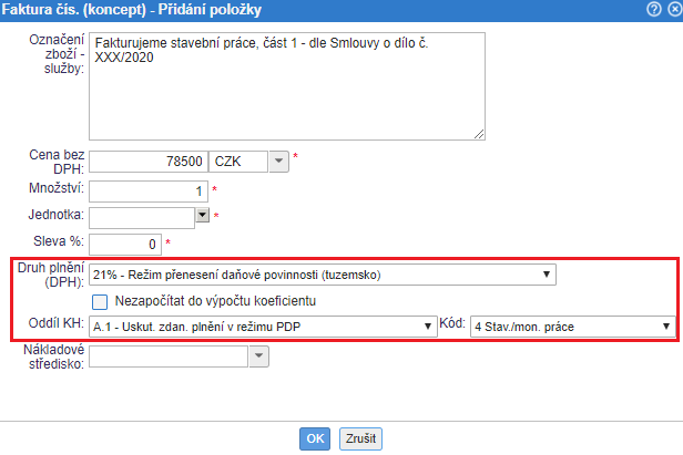 Po nastavení tohoto textu, můžete přejít k vystavení faktury v režimu tuzemské PDP.
