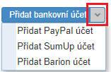 Nastavení provedete přes Banka – Bankovní účty, kde kliknete na šipku vedle tlačítka Přidat bankovní účet. Podle příslušného účtu (SumUp, Barion nebo PayPal) vyplňte požadované údaje. Více informací k jednotlivým platebním branám naleznete zde.