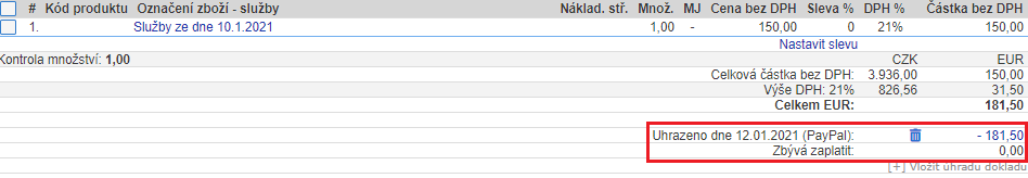 Po zaplacení kartou online uvidíte platbu ihned v systému a automaticky bude vytvořen záznam o platbě.